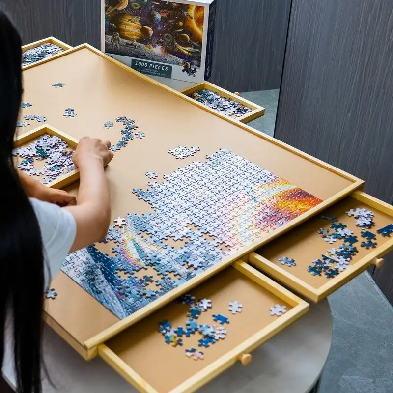 1500pcs Puzzle Board School Supplies, 27x35 Inch Wooden Puzzle Table with 6 Drawers, Portable Puzzle Organizer Storage for Tiles, Kids Adults Family Game Cool Room Decor Cheap Fun