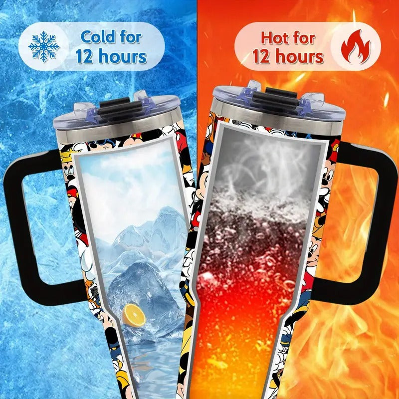1pc Disney Mickey Mouse 40oz Stainless Steel Tumbler with Lid & Straw, Insulated for Hot & Cold Drinks, BPA-Free, Vibrant Mickey Illustrations, Perfect for Camping, Sports, Car Use
