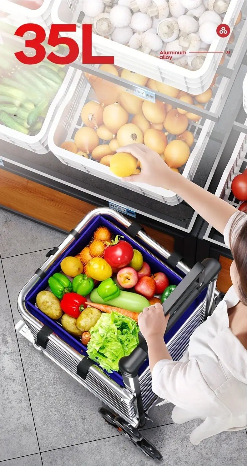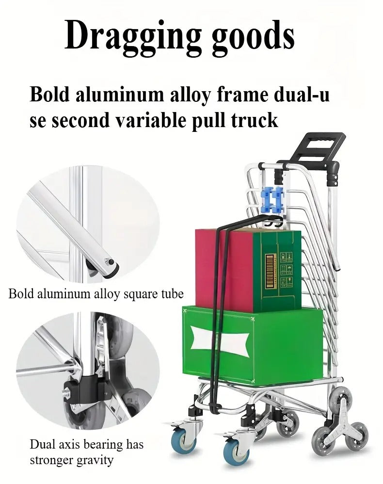 1pc Foldable 8-wheel Shopping Cart, Grocery Cart, Front Wheel With Brake, Rear Wheel Can Climb Stairs, Thick Aluminum Alloy Frame, Strong Load-bearing Capacity, Meets Daily Shopping, Transportation, Handling And Other Needs