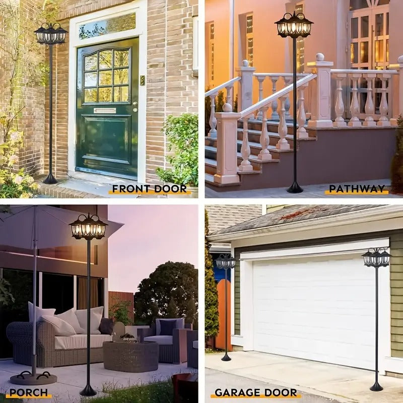 1pc Solar-Powered Outdoor Lamp Post Lighting, 3-Head Dusk to Dawn Black Polished Metal Post Lights for Backyard, Garden, Patio, Driveway, Pathway, and Porch