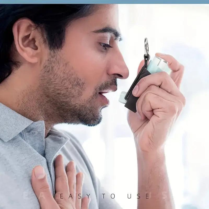 2pcs Faux Leather Inhaler Keychain Cases - Durable, Easy to Carry, Protects Asthma & Cough Bottles, Stylish Keychain Design in Black, Blue, Pink, Green
