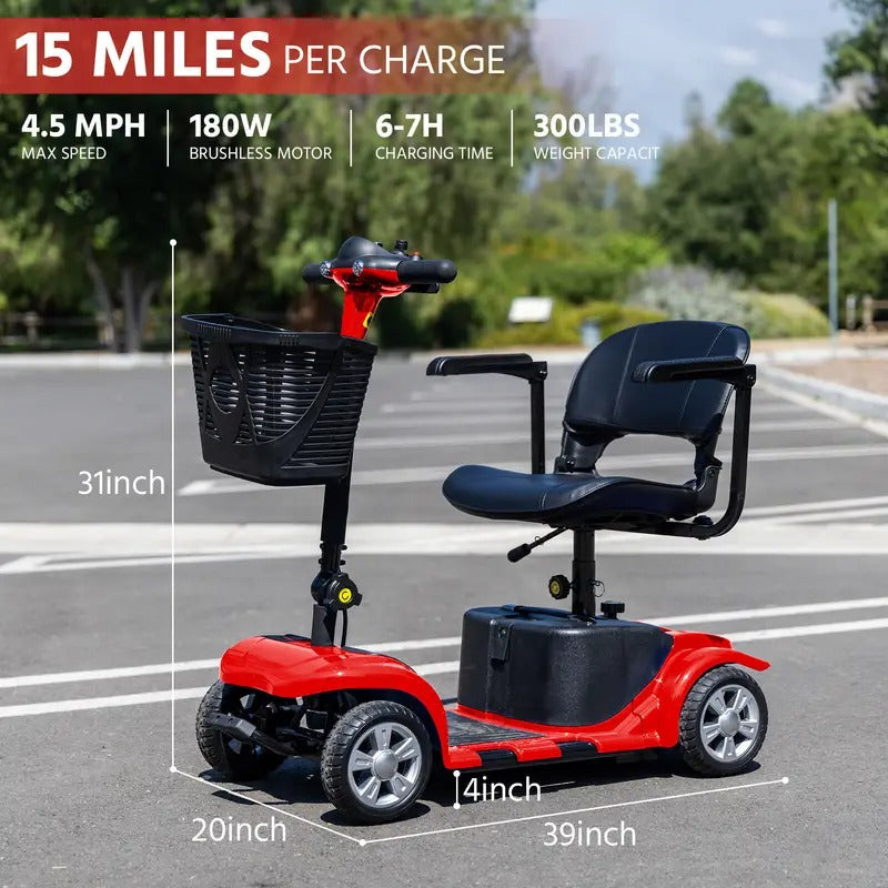 4-Wheel Folding Adult Mobility Scooter, Mobility Aid for Seniors, Weight Capacity 300 lbs, Range 10 Miles, Portable Electric Mobility Scooter with LED Headlights and Foldable