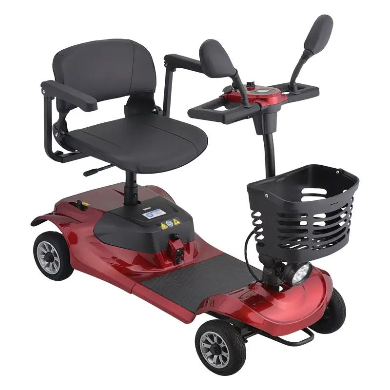 4-wheel mobility electric vehicle, 220-pound weight capacity, 20-mile extended range, maximum speed of 6 km/h. Features a basket, rearview mirror, and LED lights. Elderly mobility assistance tool,