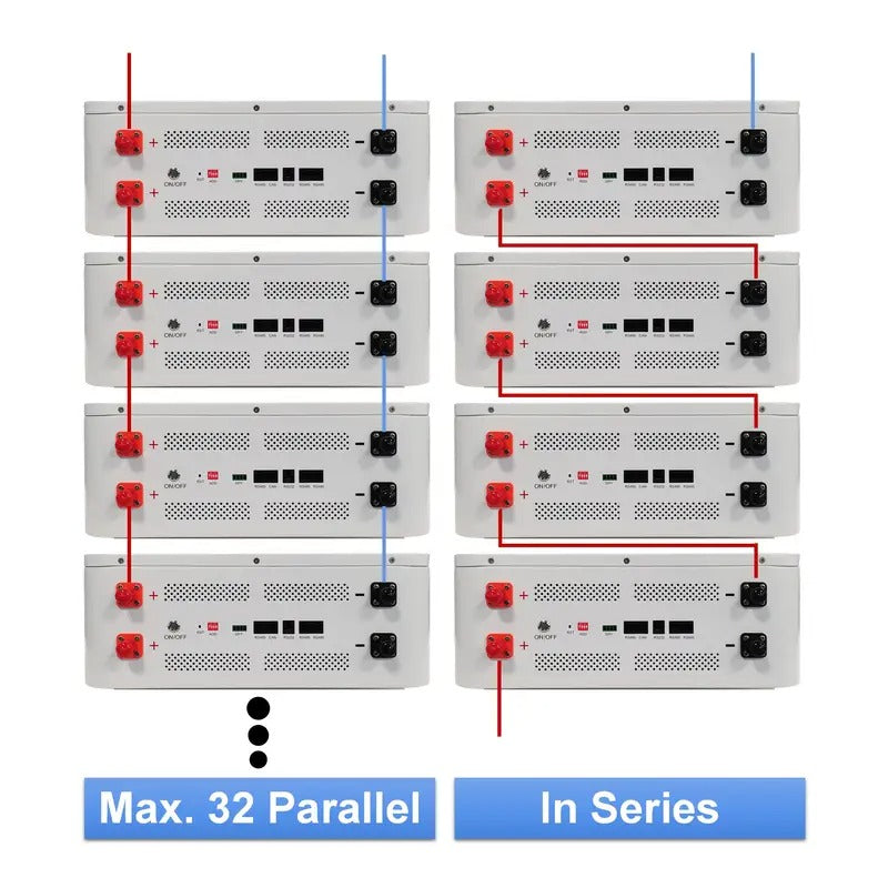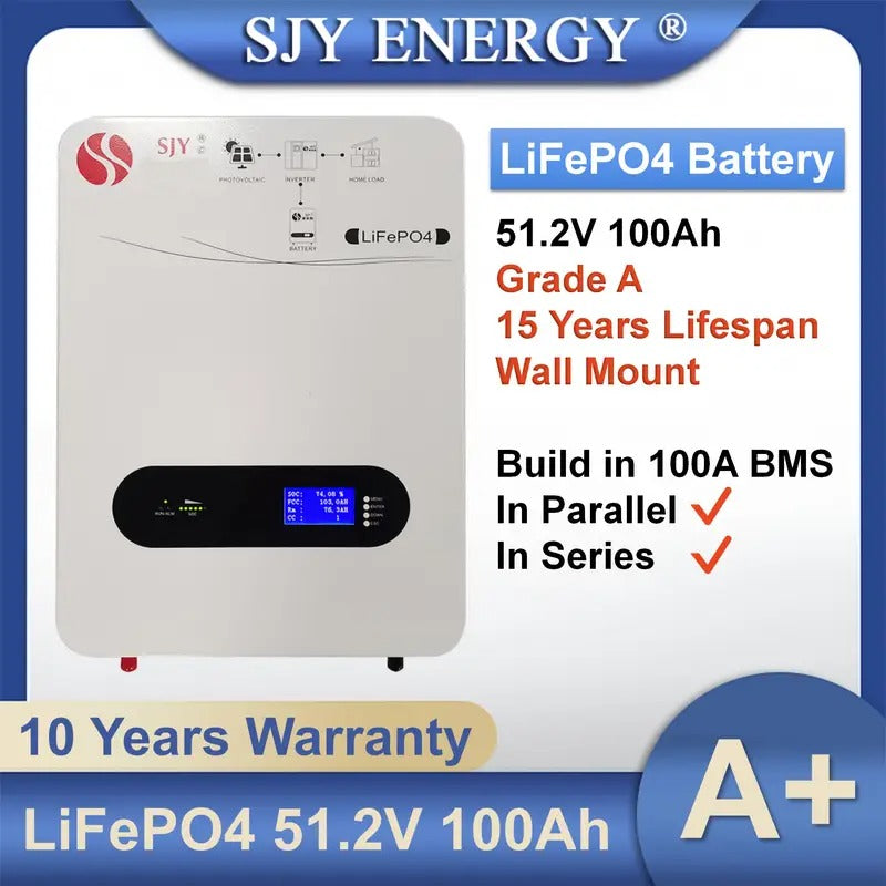 48V 100Ah Grade A Lithium Iron Phosphate Battery 1pc - Rechargeable Metal Battery Pack for Home Solar System, Garage Charging Station - No Electricity Needed, 51.2V 100000mAh Wall Mount