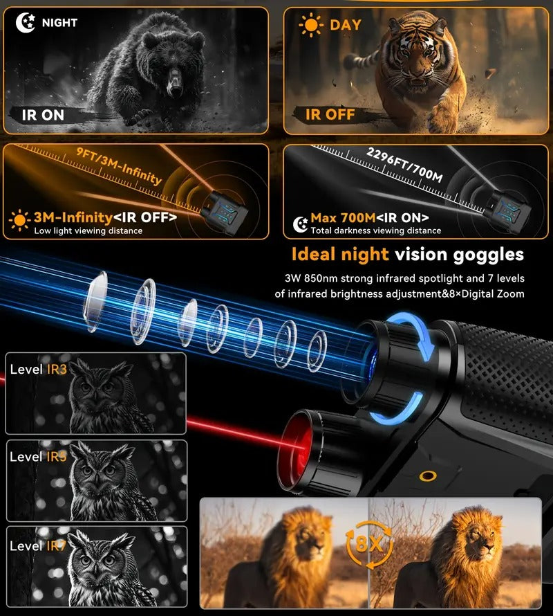 [4K Night Vision Goggles] 4K Night Vision Goggles - Night Vision Binoculars | 4500mAh Rechargeable Infrared Binoculars With 4.5'' Large Screen, 8X Digital Zoom, 32GB TF Card For Camping, Outdoor And Hunting