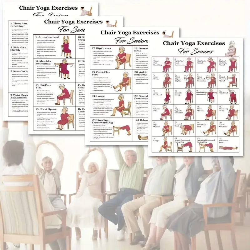 4pcs Chair Yoga Practice Set, Suitable for Seniors, Beginners Chair Yoga, Fitness Guide for Seniors, Suitable for Home, Bedroom Health Gift for Loved Ones And Friends, 8, 0x10, 0 Inches, Detailed Practice Instructions