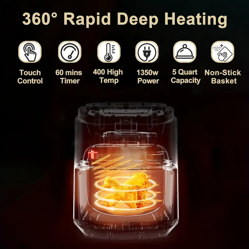 [5-quart 6-in-1 Air Fryer] 6-in-1 Large 5-quart Air Fryer | 8 One-Touch Preset Functions, Smart Cook Program, Rack Basket, Viewing Window, Interior Light