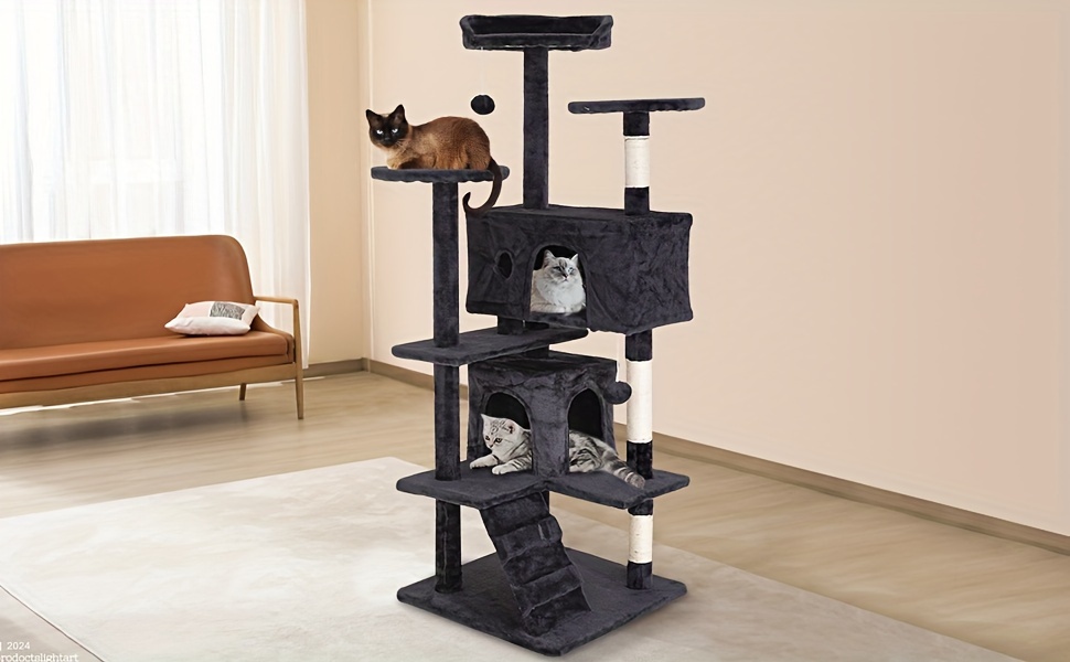 54/70" Multi-Level Cat Tree Tower with Scratching Posts & Cozy Condos, Space-Saving Indoor Cat Playhouse, Durable Plywood Construction, Fun Jumping Platforms, Multiple Colors Available for Cats
