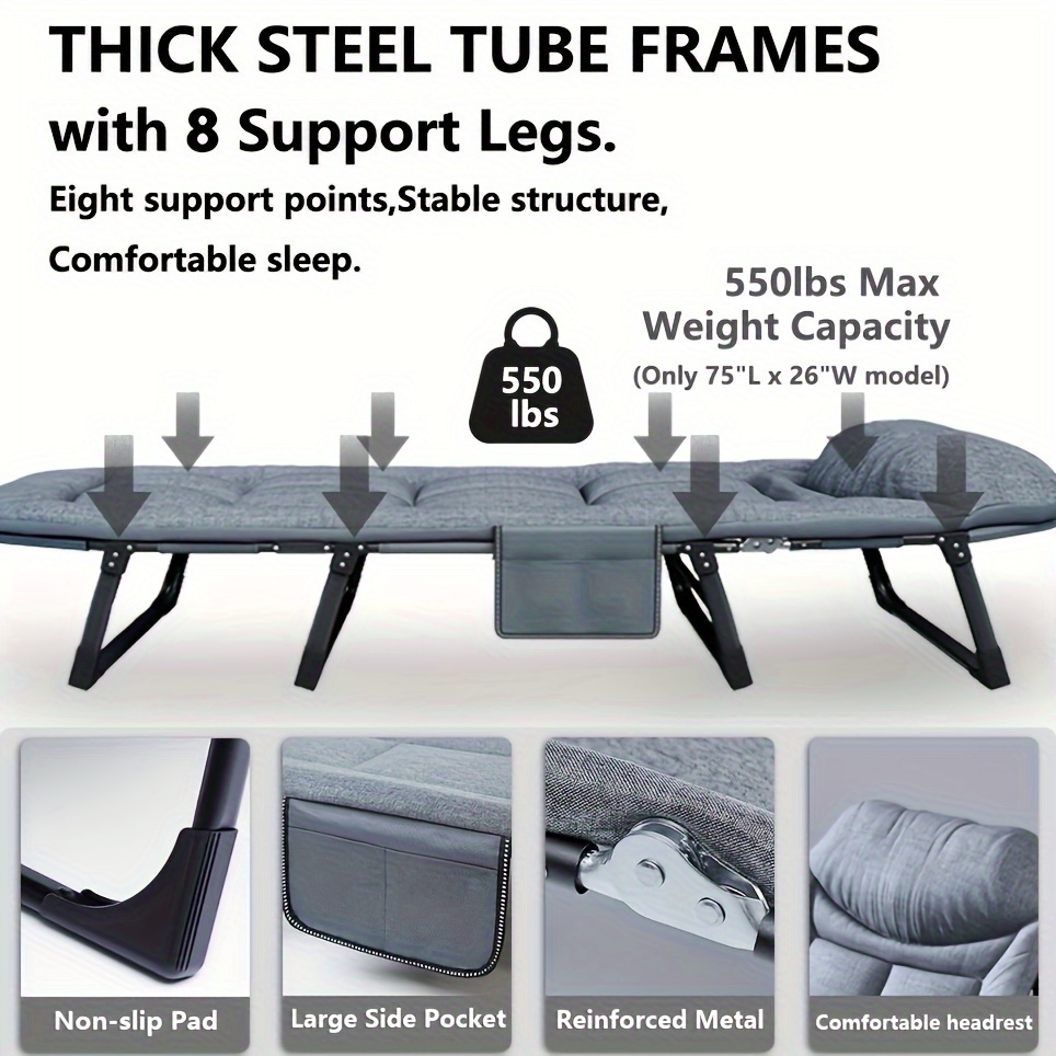 550 Lbs Weight Capacity Patio Party Resting Folding Camping Bed, 180 Cm Adjustable Folding Deck Chair, Perfect For Adults, Travel, Beach And Camping Adventures, Easy To Carry