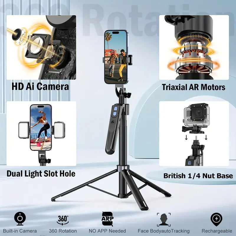 70" Auto Face Tracking Tripod For Phone, 360 Rotation Travel Selfie Stick Mount, Face Tracking Phone Tripod Holder With Remote And Light, Applied To YouTube Video Recording