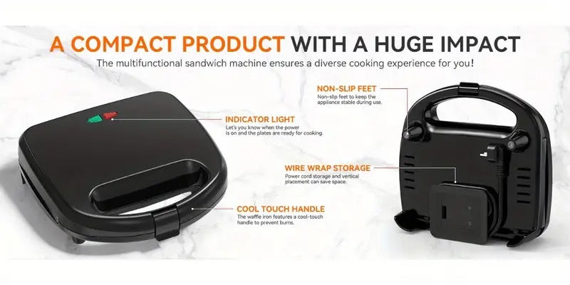 750W Triangle Sandwich Maker - 2-Slice Grilled Cheese Press with Non-Stick Plates - Ready Indicator Lights & Cool-Touch Handle - Easy to Clean