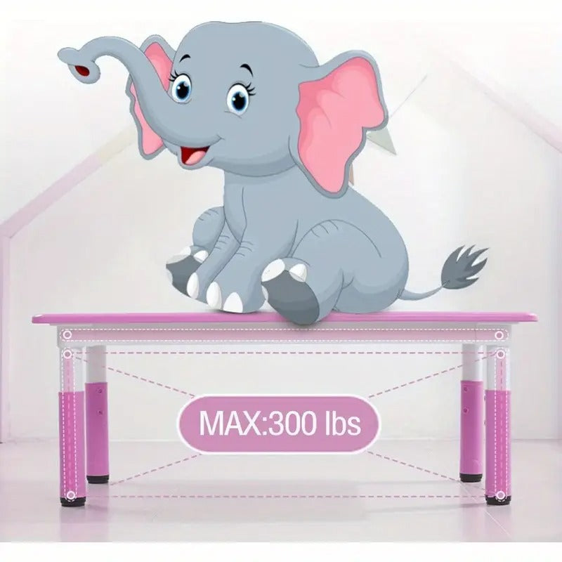 7pcs Table and Chair Set, Height-adjustable Table with 6 Chairs for Multi-purpose Study Table with Non-slip Legs, Doodle Tabletop, Suitable for Home/ daycare Center
