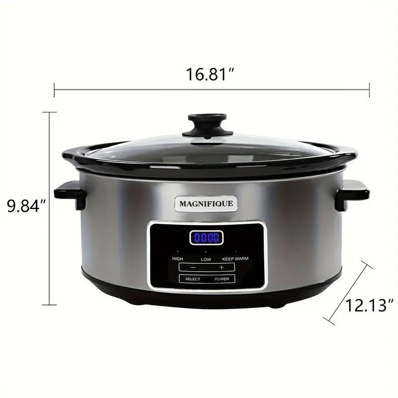 8-Quart Digital Programmable Slow Cooker with Timer - Small Kitchen Appliance for Family Dinners - Serves 10+ People - Heat Settings: Keep Warm, Low and High
