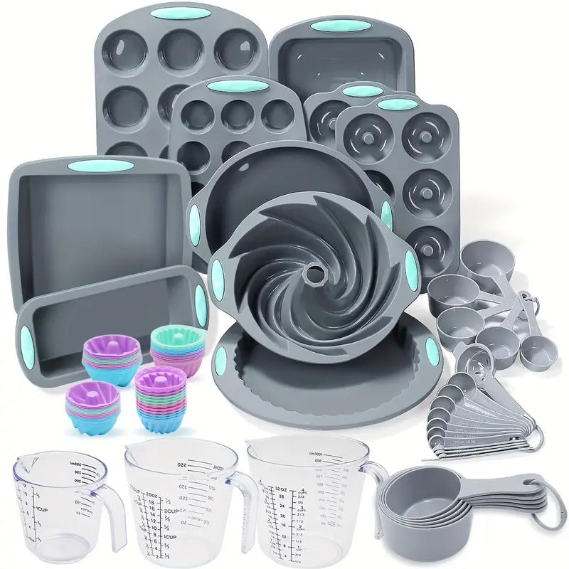 [83pcs Silicone Bakeware Essentials] 83pcs Silicone Bakeware Set, Silicone Cake Molds, Baking Sheet, Donut Pan, Silicone Muffin Pan, Brownie Cake Mold