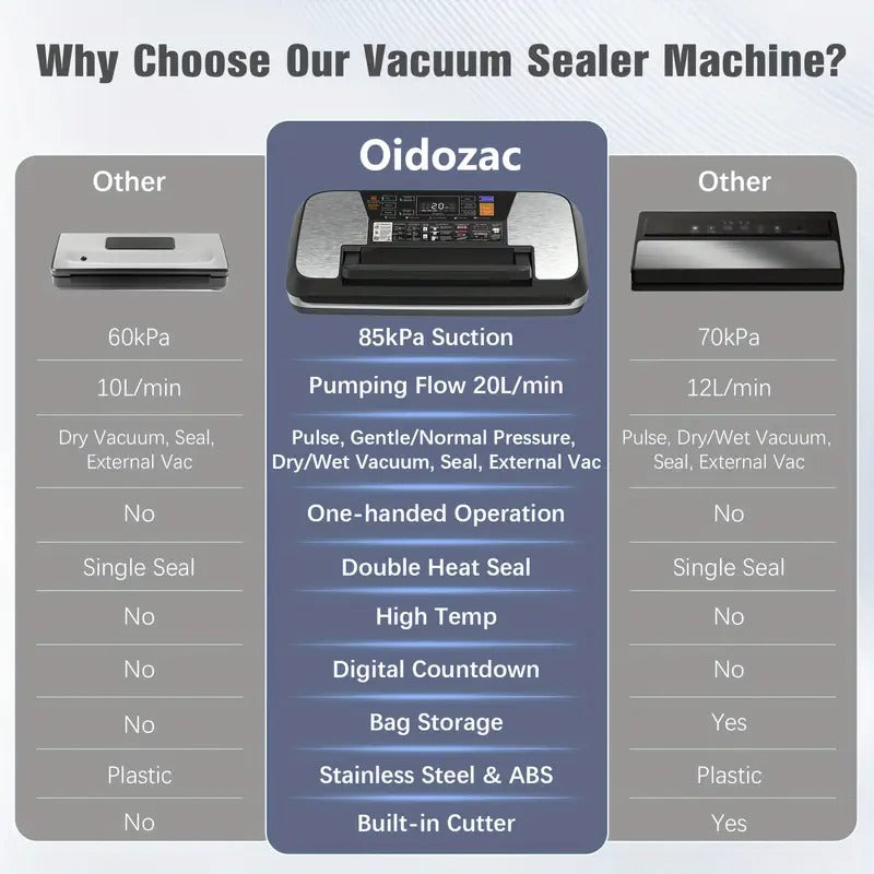 85kPa Food Vacuum Sealer Machine, 12 in 1 Food Sealer Vacuum Sealer With Easy Lock Handle, Double Heat Seal, Vacuum Sealer Food With Built in Cutter And Bag Storage, 1 Roll And 10 Pre-cut Bags