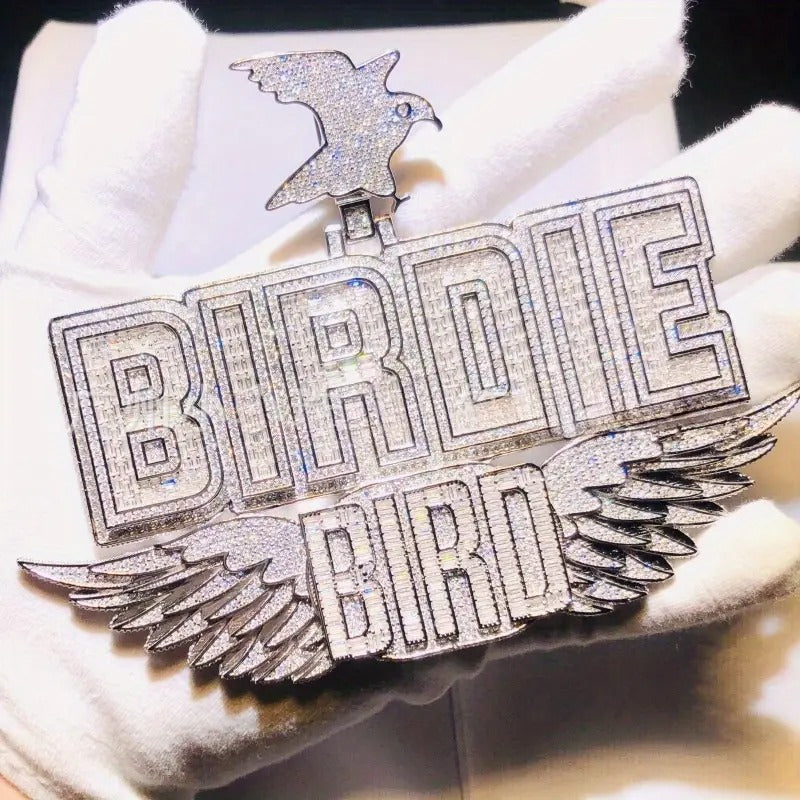 925 Silver Full Moissanite Men's Hip Hop Wing Pendant Letter Necklace Pendant Customised Men's Street Trend Necklace Holiday Gift Birthday Party Gift Best Gift for Boyfriend Daily Wear
