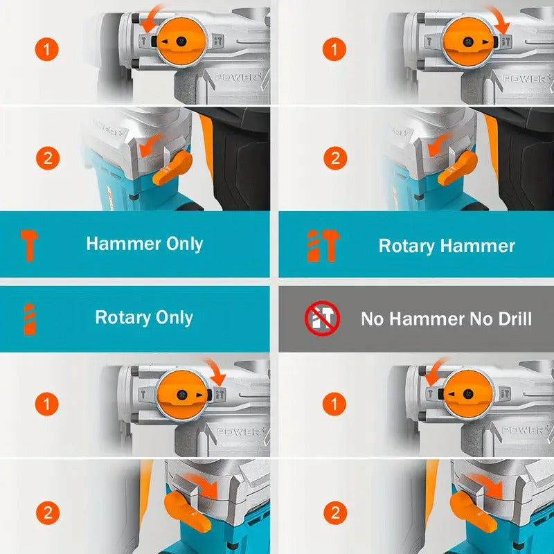 [9A 3-Fn Rotomartillo] 9 Amp 3-Function 1-1/8" SDS-Plus Rotary Hammer Drill With Safety Clutch | Corded Rotomartillo For Concrete | Including 3 Drill Bits, Flat Chisel, Point Chisel, Carrying Case