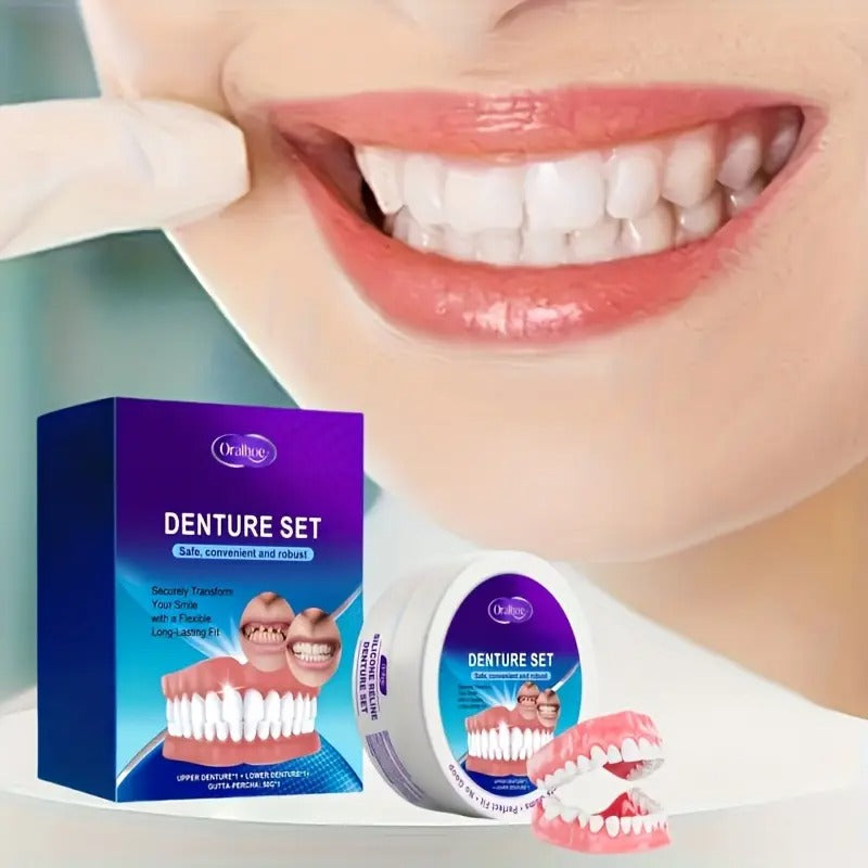 Adjustable Denture Set, Upper And Lower Natural-looking Dentures, White Veneers, Comfortable And Realistic, Easy to Install, Suitable for All Tooth Shapes, Boosting Confidence
