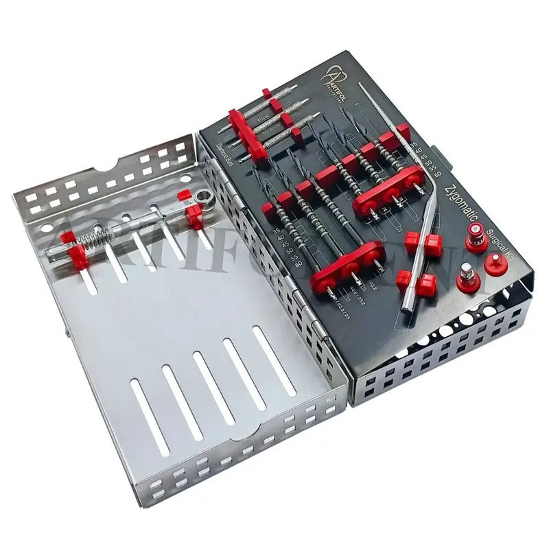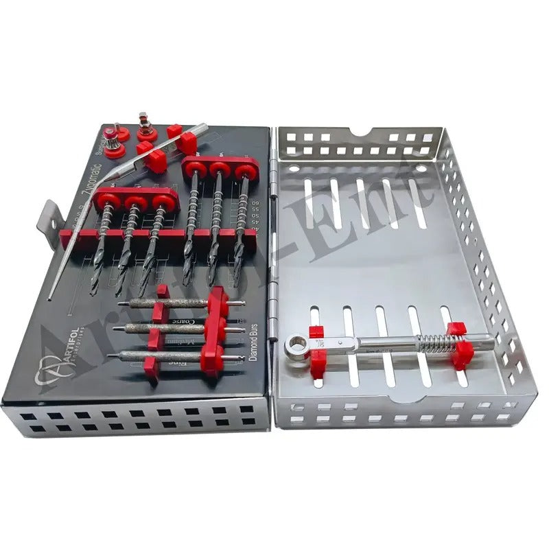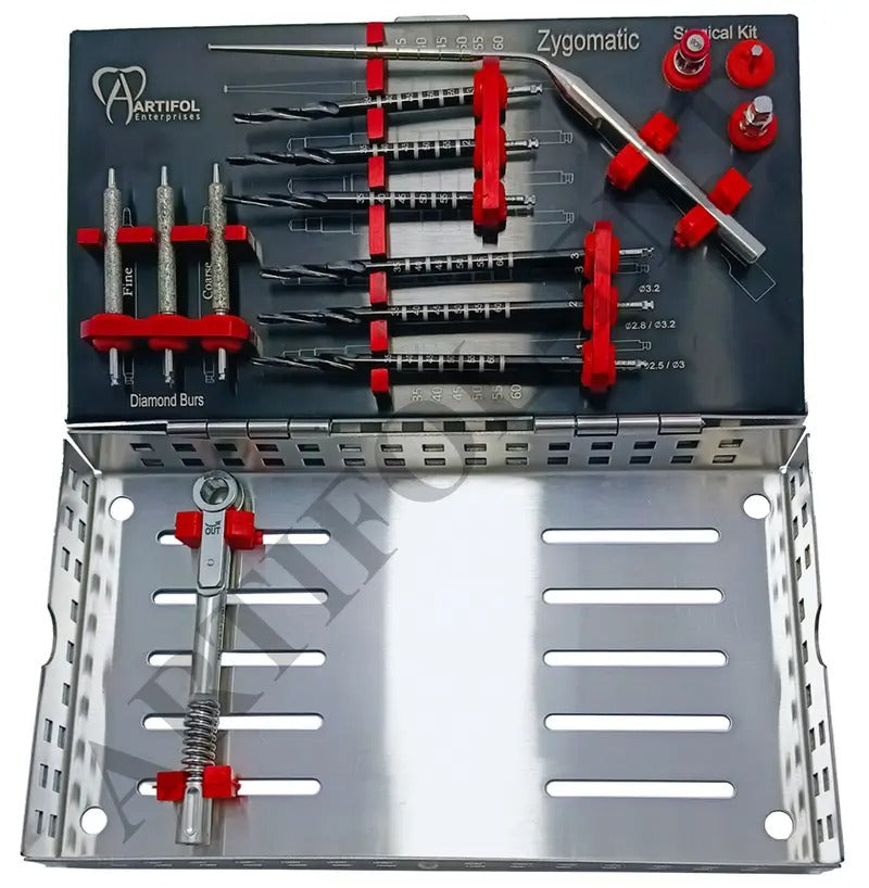 ARTIFOL 14 Pcs Dental Implant Zygomatic kit Black Titanium Coated Step Drills Set for Zygoma with Depth Probe and Ratchet Wrench Strong | Precise | Reliable OS1054