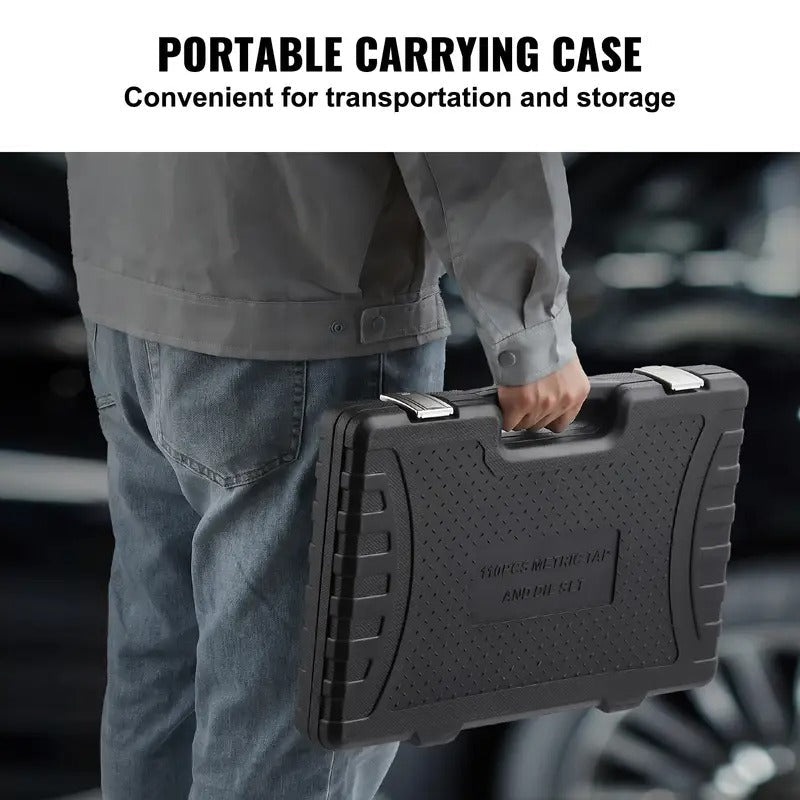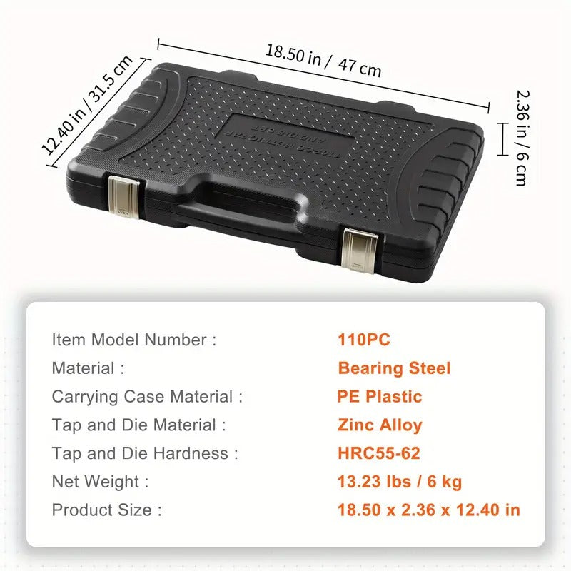 [Bearing Steel Tap and Die] 110pcs Happybuy Tap and Die Set - Metric Size M2 to M18, Bearing Steel Taps and Dies - Essential Threading Tool for Cutting External Internal Threads, with Complete Accessories and Storage Case