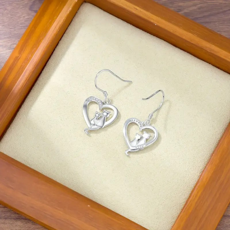 Cat Earring for Women Sterling Silver Cat Dangle Drop Earrings Animal Earrings Jewelry Gifts for Her