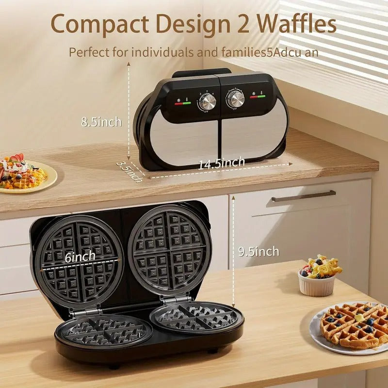 Double Waffle Maker 6 Inch, 1400W Belgian Waffle Maker for Breakfast and Snacks, Stainless Steel Waffle Iron with Nonstick Plates, Temperature Knob, Cool-Touch Handles