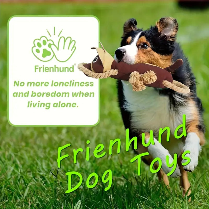 Durable Interactive Dog Toy with Squeaky Sound - Sturdy Anti-Bite Tension Rope, Suitable for Large, Medium, and Small Dogs - Brown and Tan Puppy Model, No Battery Required - Perfect Christmas Gift, Cartoon Dog Design