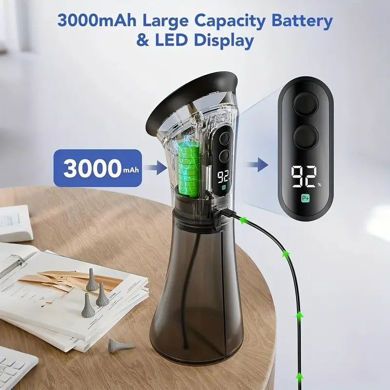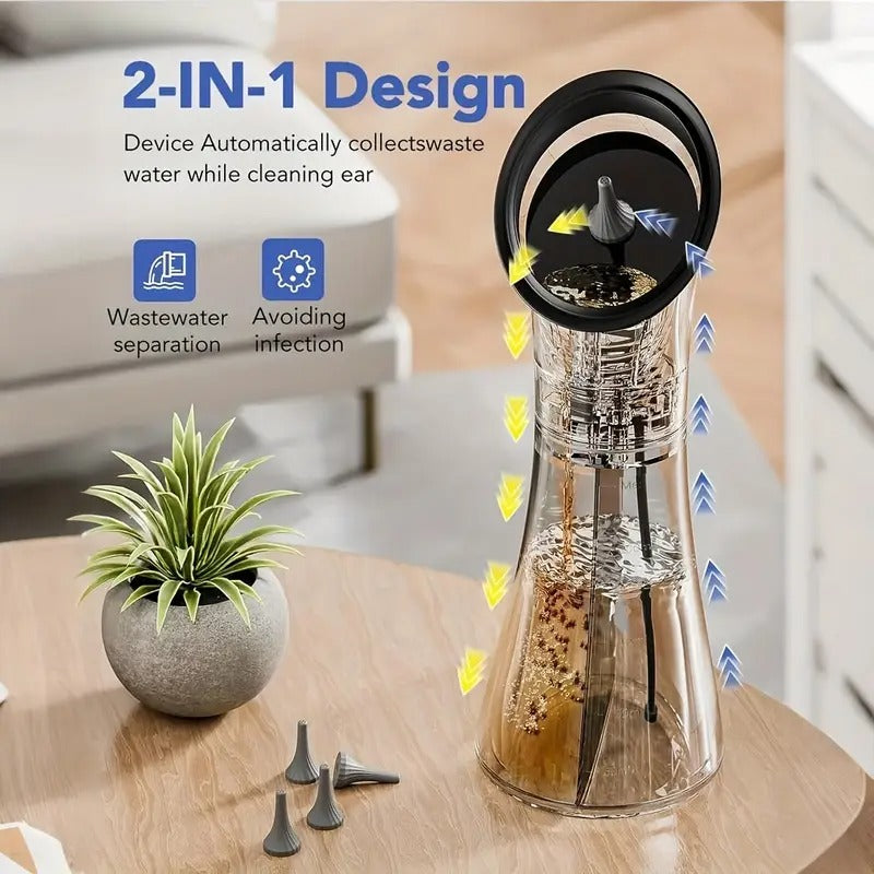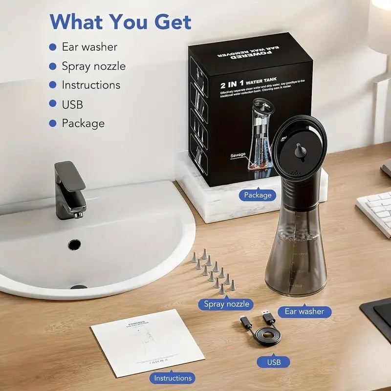 Electric Ear Wax Removal System Pro - 3-Speed Hydraulic Ear Cleaner Kit with Water Temp Sensor & Visual Waste Tank | Rechargeable USB, Dry/ Dirty Storage, Nozzle Belt, Medical-Grade Home Care