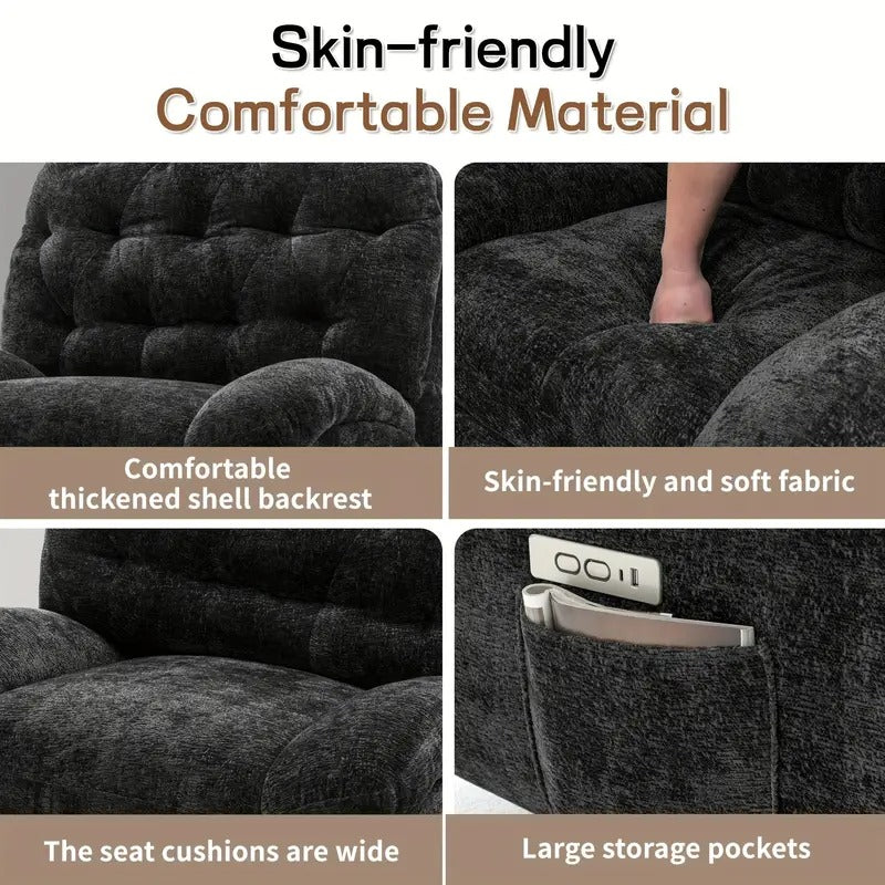 [Electric Recliner] Comfortable Oversized Swivel Recliner Chair | Adult Electric Recliner with USB Port and Side Pocket Storage, Large Chenille Recliner