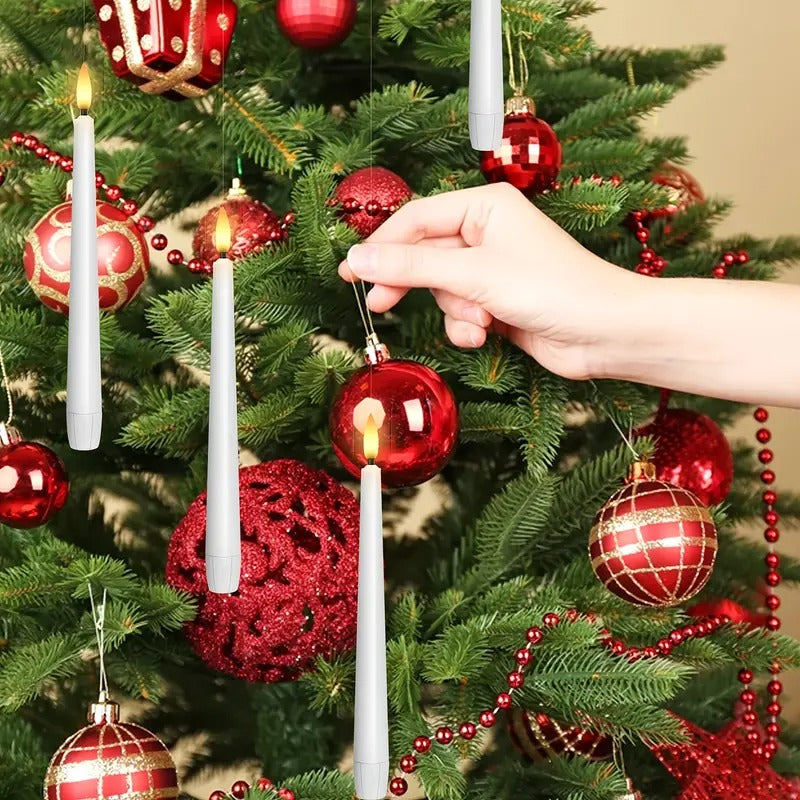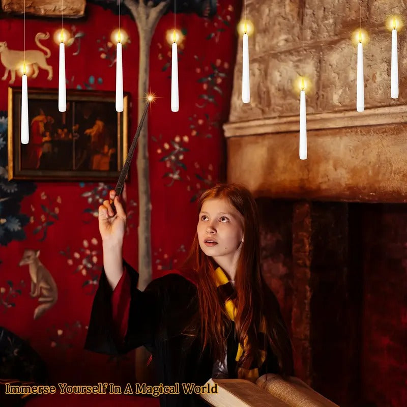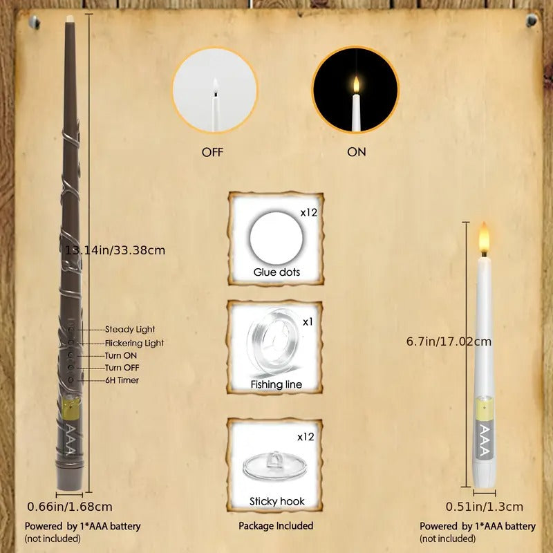 Floating Candles With Wand Remote And Timer Hanging Flameless Flickering Battery Operated Candles, Pack Of 12 (0.51" X 6.7") White Magic Floating Candles