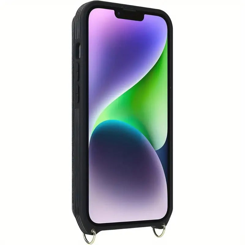 For Iphone 14 Case Designed for Women Featuring a Card Holder And Strap, Includes a Crossbody Lanyard, Ring Stand, Snap Clasp, And Fits 6.1 Inch Phones (Black).