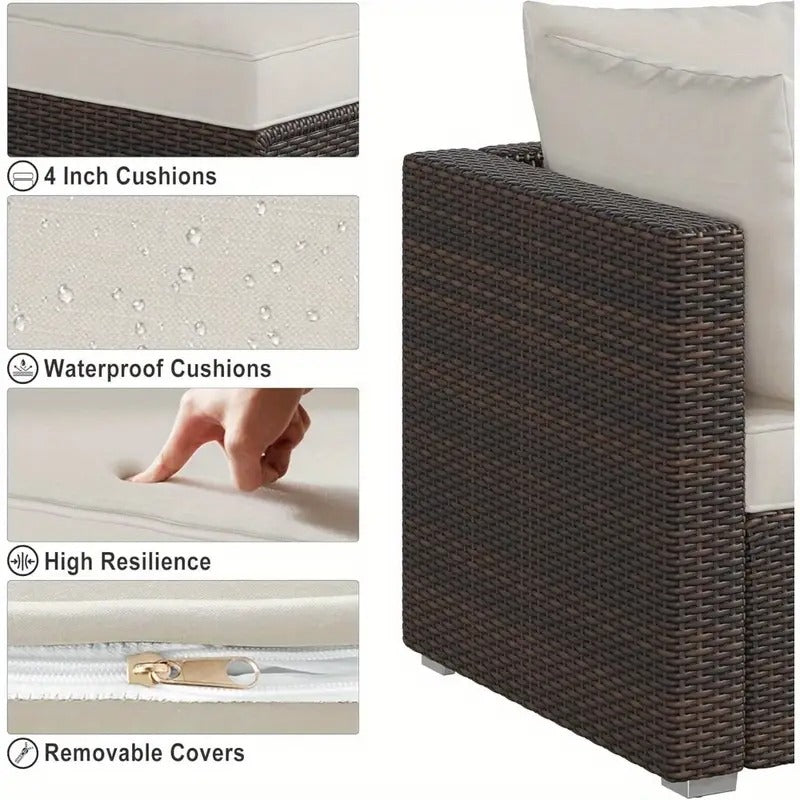 GAOMON 8pcs All-Weather Outdoor Patio Furniture Set - Rattan Wicker Sectional Sofa with Glass Table & Storage Box, Durable Weather-Resistant Design