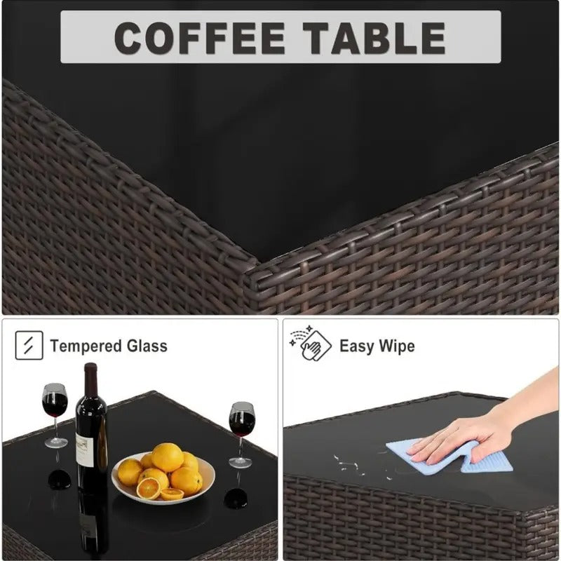 GAOMON 8pcs All-Weather Outdoor Patio Furniture Set - Rattan Wicker Sectional Sofa with Glass Table & Storage Box, Durable Weather-Resistant Design for Garden, Balcony, or Patio Use, Patio Furniture Set,