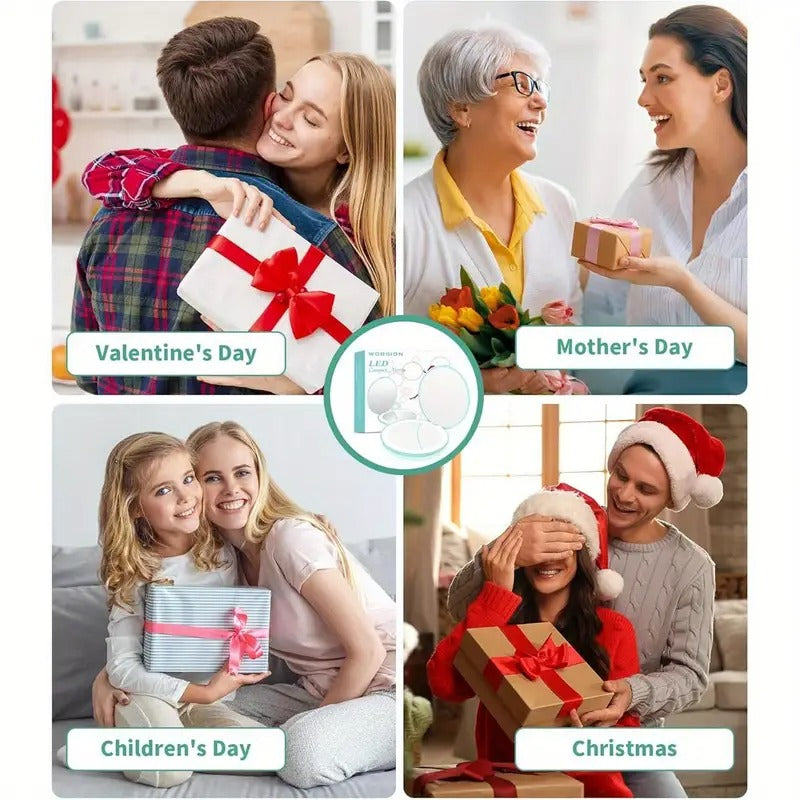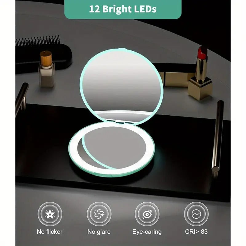 LED Lighted Travel Makeup Mirror, 1x/ 10x Magnification, Compact, Portable for Handbag, Purse, Pocket, 3. 5 inch Illuminated, Folding, Handheld, 2- Sided, Round, Cyan, Pocket Mirror,