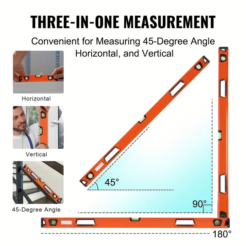 Magnetic Torpedo Level, 78/48/32/24/16/10in Mechanical Level Set, Bubble Vials Ruler for 45/90/180 Degree, Aluminum Alloy Leveler Tool W/ Viewing Window, Shock-Resistant for Plumbing, Wood (Only 10-inch Has Magnet)