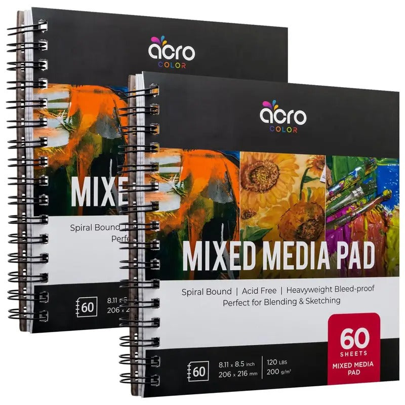 Mixed Media Sketchbook, 8.11” x 8.5”, Spiral Bound Sketch Pad with Thick Heavyweight Paper, 200 GSM, 120 LBS, for Wet & Dry Media - Watercolor Paint, Pencils, Charcoal, Pens