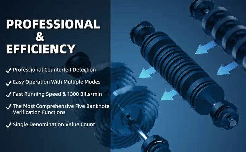 Money Counter Machine, Value Counting, UV/MG/IR/MT/DD Counterfeit Detection, USD/EUR Bill Counter, Add and Batch Modes, Cash Counting Machine 1300 Bills/min