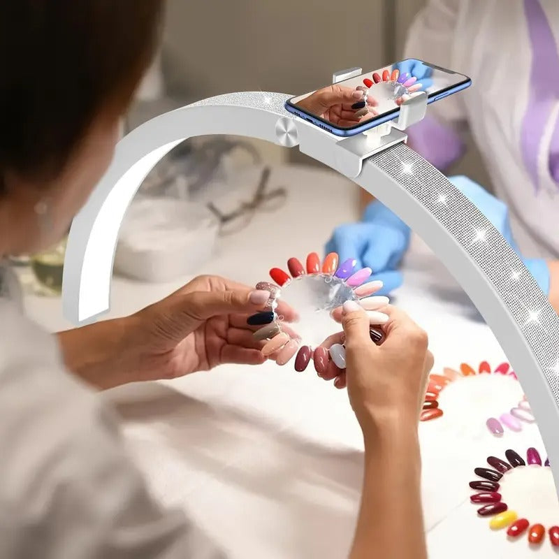 Nail Lamp, 40W] 40W Half Moon Shaped Nail Lamp with Phone Holder - 29 Inch, 7 Color Modes, 10 Brightness, Wired Controller and Remote Control, for Beauty/Eyelashes/Tattoo/Crafts
