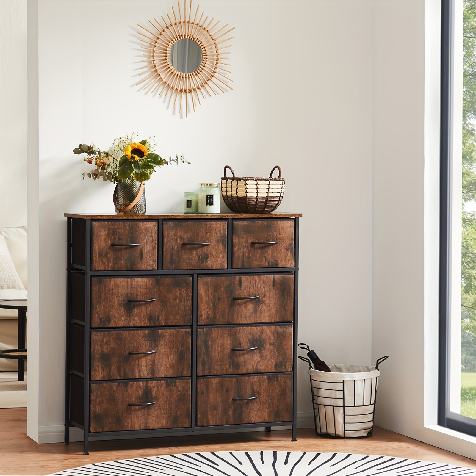 OLIXIS 9-Drawer Storage Dresser Organizer with Wooden Top & Metal Frame - Freestanding Fabric Closet Cabinet, 3.2+ Cubic Feet Storage, 27" Tall Mobile Organizer for Bedroom, Living Room, Entryway, Closet Organizers And Storage, Bedroom Organizer, Modern A