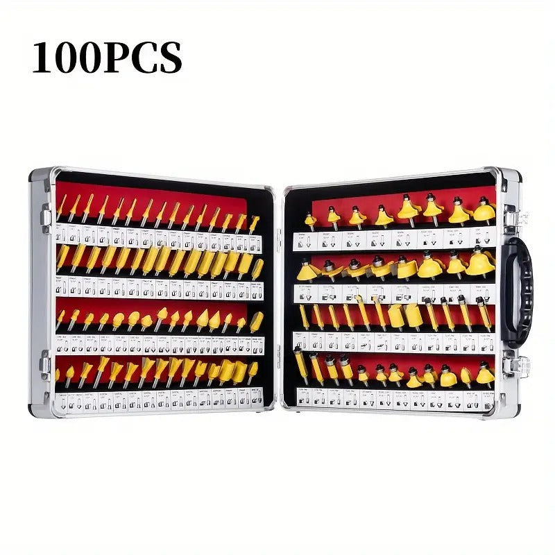 Precision Router Bit] 24/100pcs Precision Woodworking Router Bit Set | Multi-Purpose Carbide, 1/4 Handle, Easy to Hold | for Fine Milling And Carving, Woodworking Tools for Professional And Beginner Woodworkers