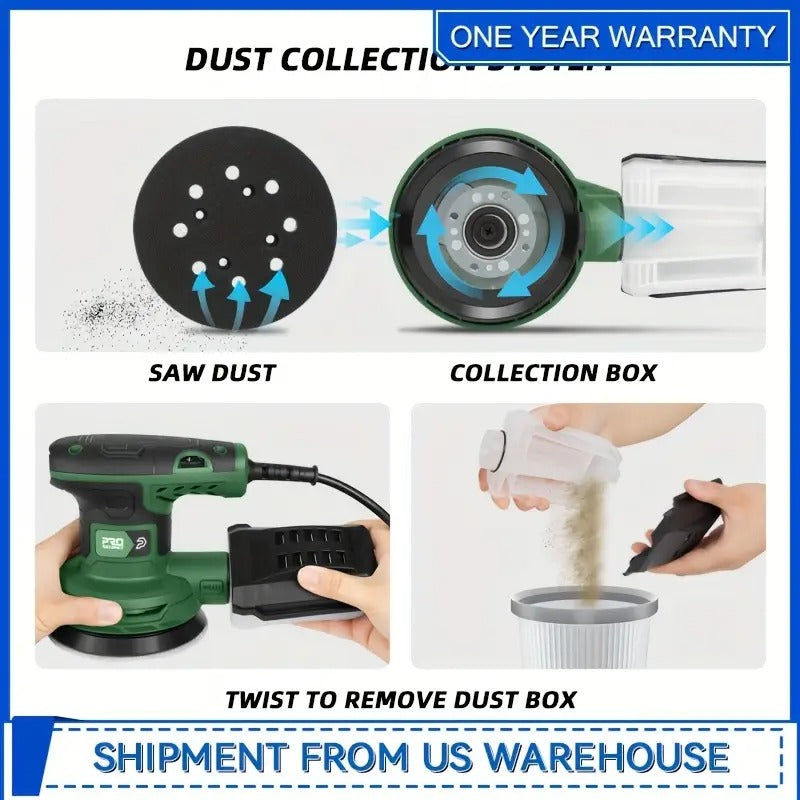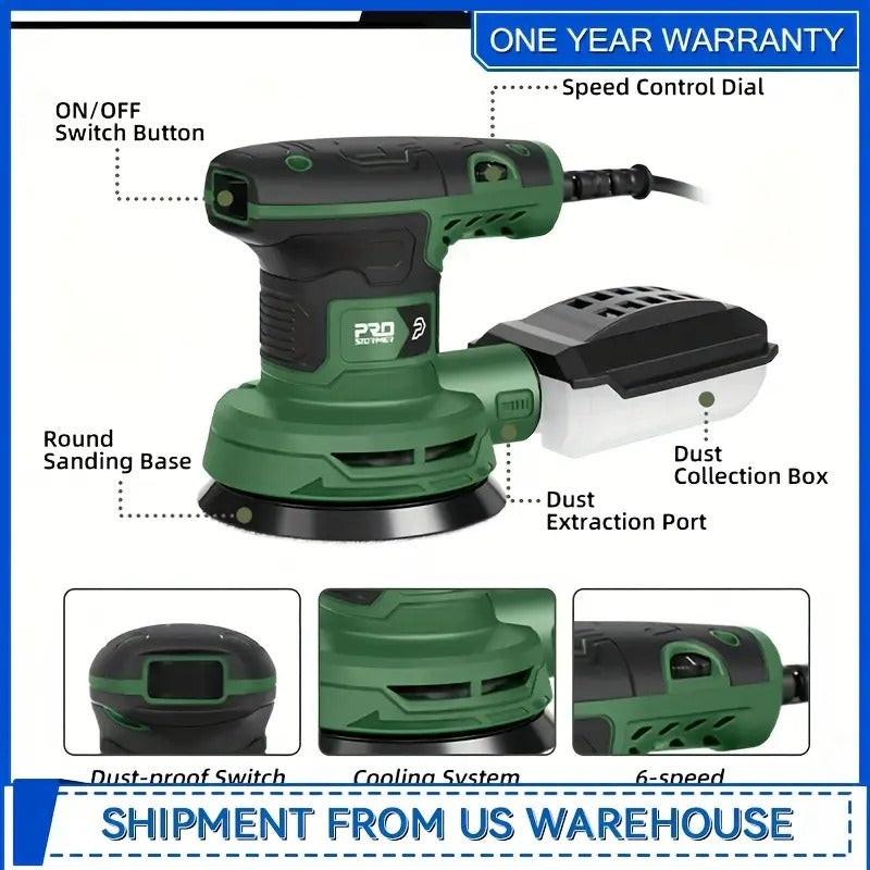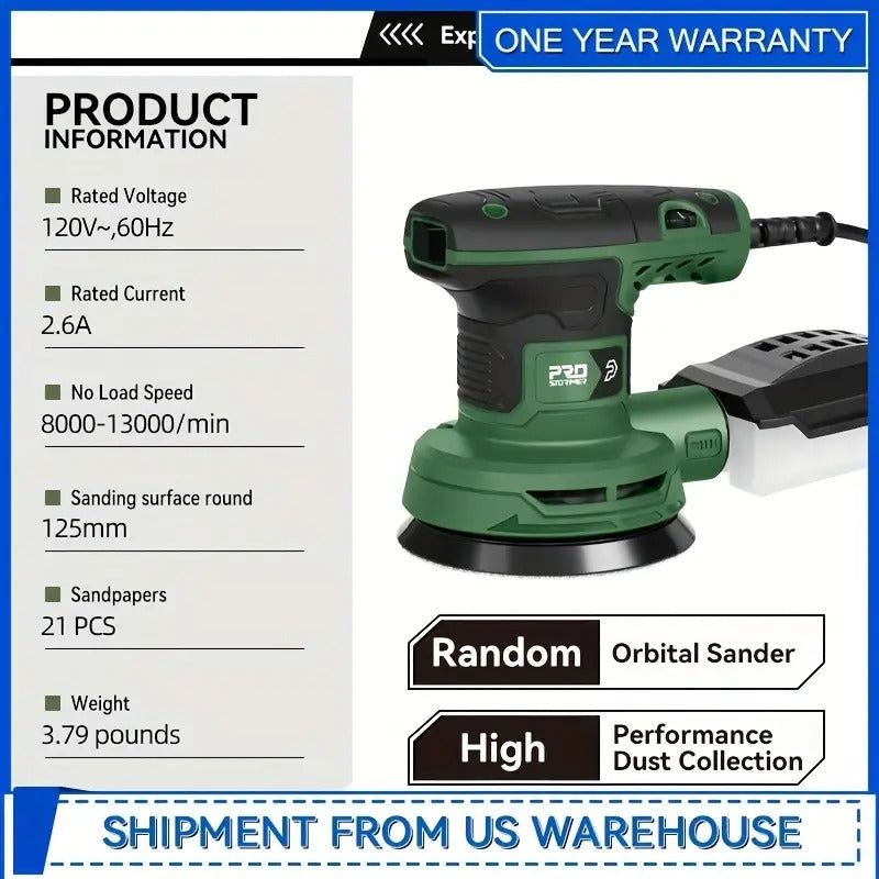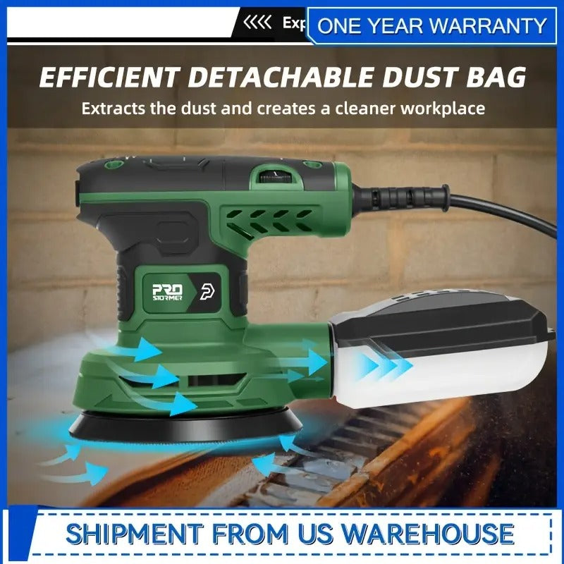 Prostormer 5-Inch Random Orbital Sander With 21pcs Sandpapers, 8000-13000RPM, 2.6AMP Palm Sander With 6 Variable Speeds, Dust Collection For Polishing, Sanding