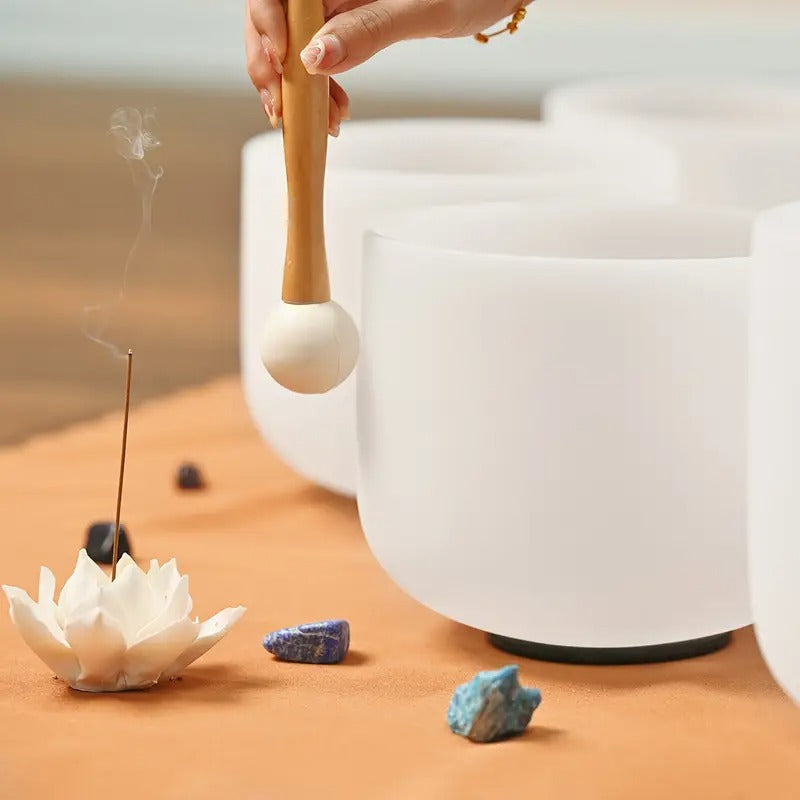 • [Quartz Crystal] 432Hz 6"-12" Set Of 7 Chakra Frosted Quartz Crystal Singing Bowl Sound Bath Bags | Frosted Chakra Quartz Crystal Singing Bowls | For Bath Sound Bowls Meditation Set Yoga