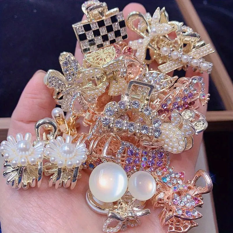 Random 10pcs Luxury Zirconia Women'S Bow Hair Accessories - Glamorous Flower Design Claw Clips, Colorful Non-Slip Grips, Elegant Hairpins for Styling and Weddings, Daily Wear, Hair