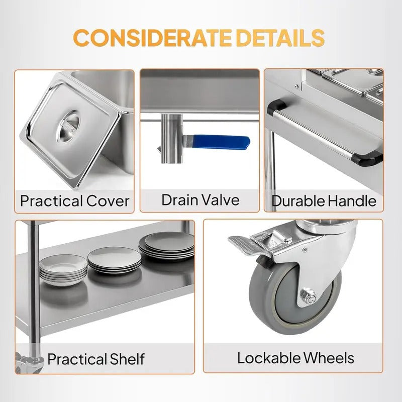 ROVSUN Electric Commercial Food Warmer 72QT 1500W, 9-Pan Steam Table 8QT/Pan Stainless Steel Bain Marie w/Acrylic Shield Overshelf Undershelf Temperature Control & Lid for Buffet Restaurant 110V