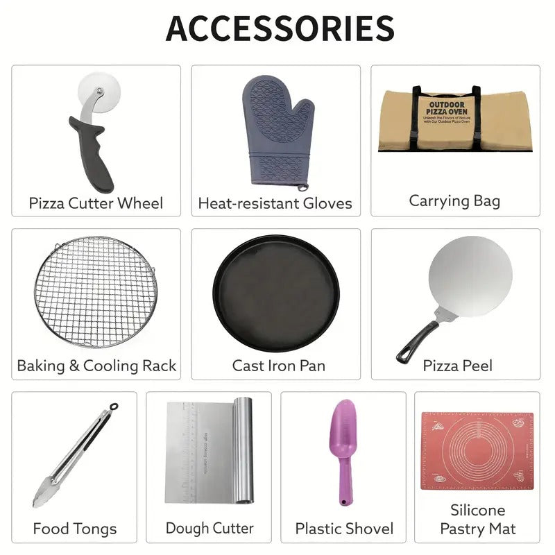 [Silvery Pizza Oven] Portable 12" Silvery Semi-Circle Wood Pellet Pizza Oven | Manual Handle Rotation, Semi-Automatic Design, Built-in Thermometer, 360-Degree Even Heating, Sleek Design For Perfect Christmas Gift