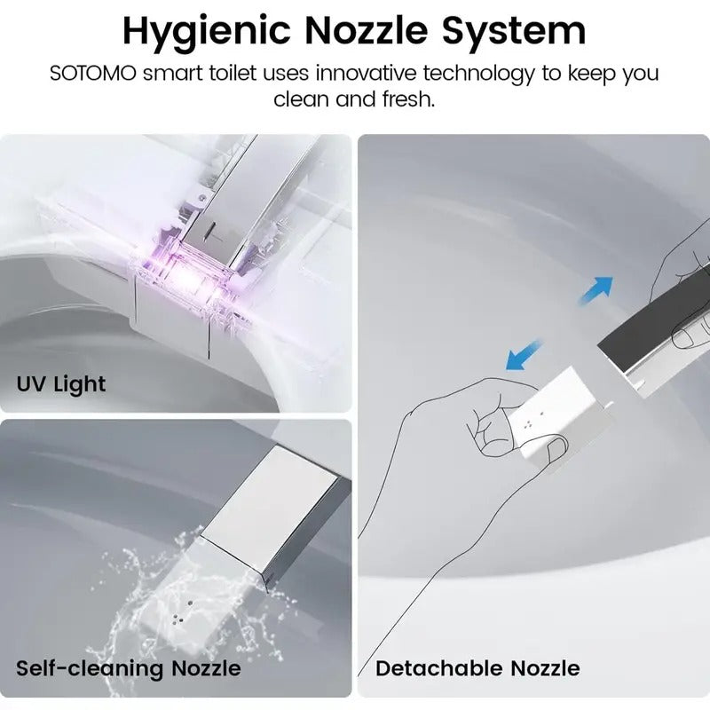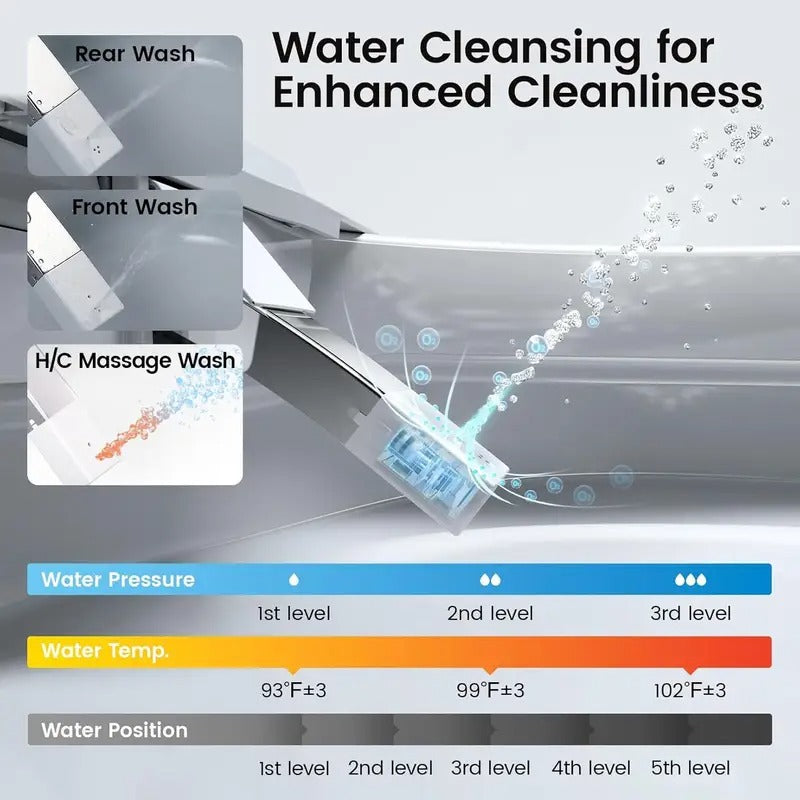 Smart Toilet with Built-In Bidet, Auto Open and Close Lid, Heated Seat, Warm Air Dryer, Night Light, 1.06 GPF Powerful Auto Flush and Blackout Flush, Easy Operation by Knob, Remote, Kick Button