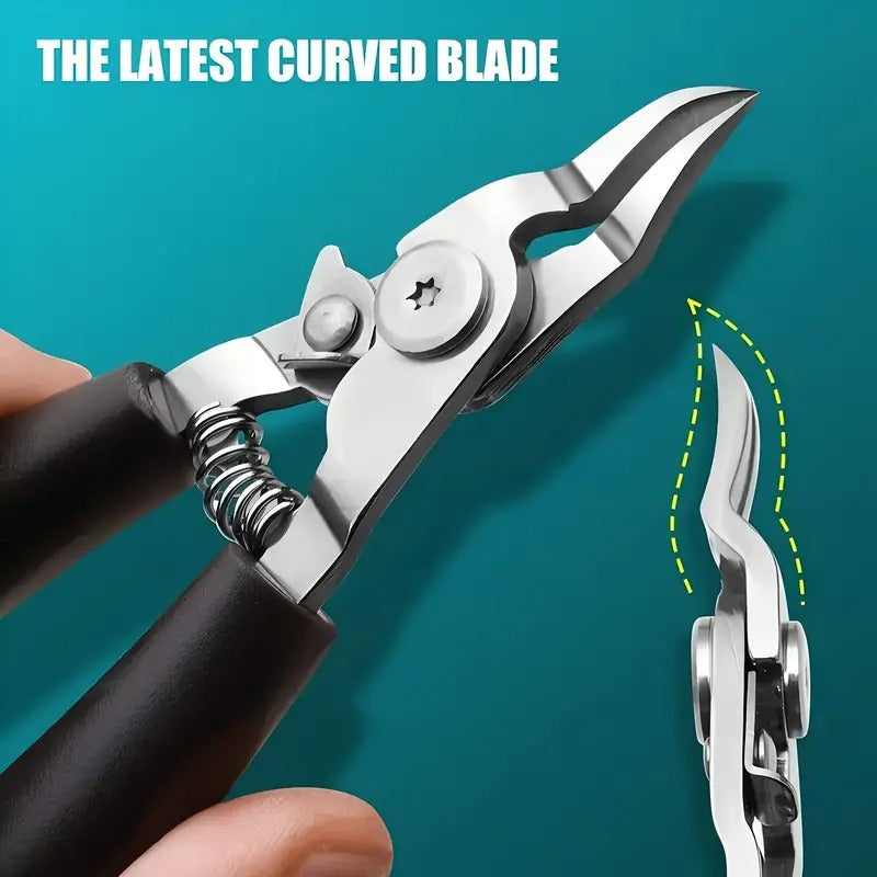 Stainless Steel Toenail Clipper with Sharp Curved Blade - Precision Trimming for Thick & Ingrown Nails, Ergonomic Black Handles, Odorless Pedicure Tool for Men & Seniors,
