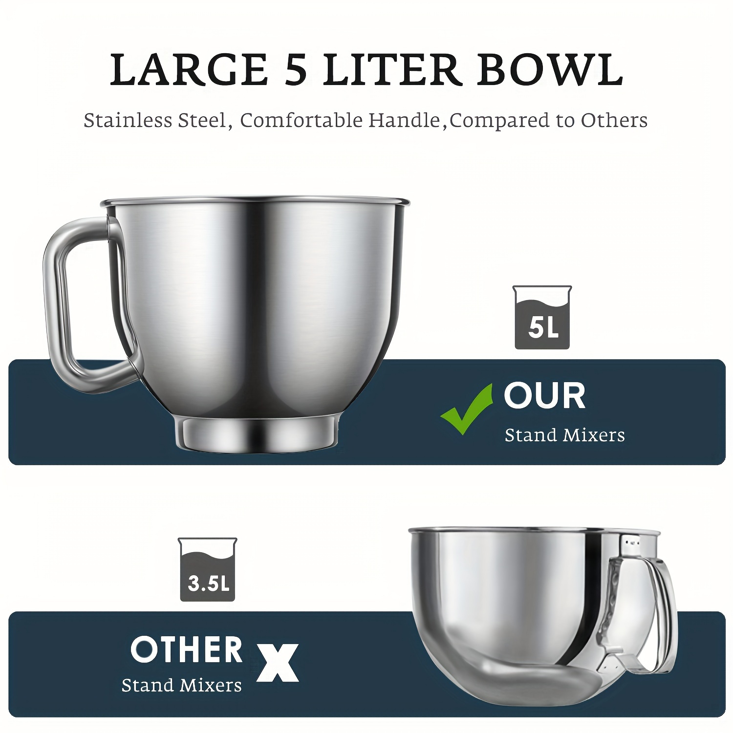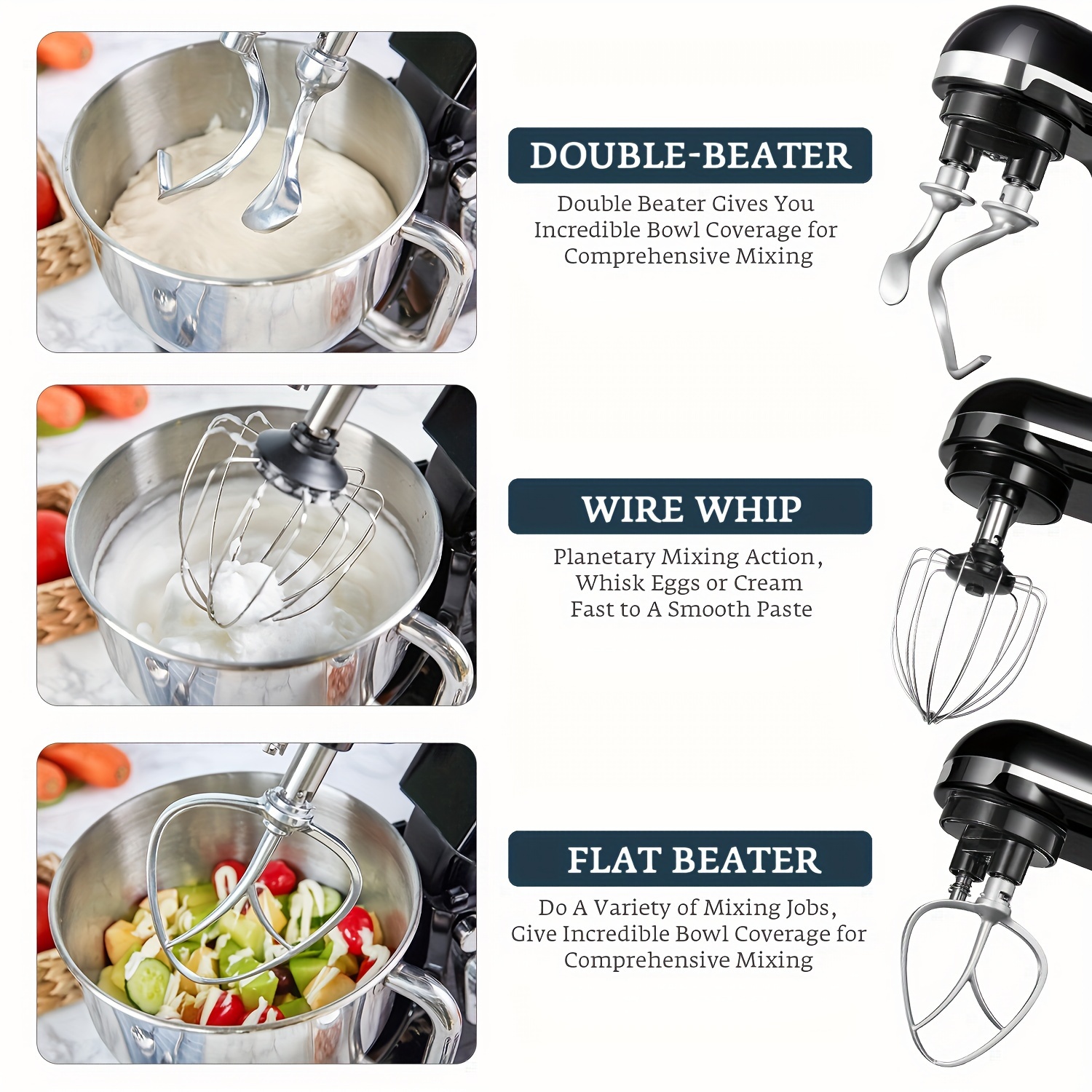 Stand Mixer with Double Hook, Multifunctional Dough Maker, 6 Speeds, 5.5 Quart Stainless Steel Bowl, Hard Dough Hook, Beater and Whisk, Black