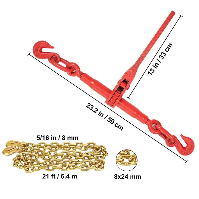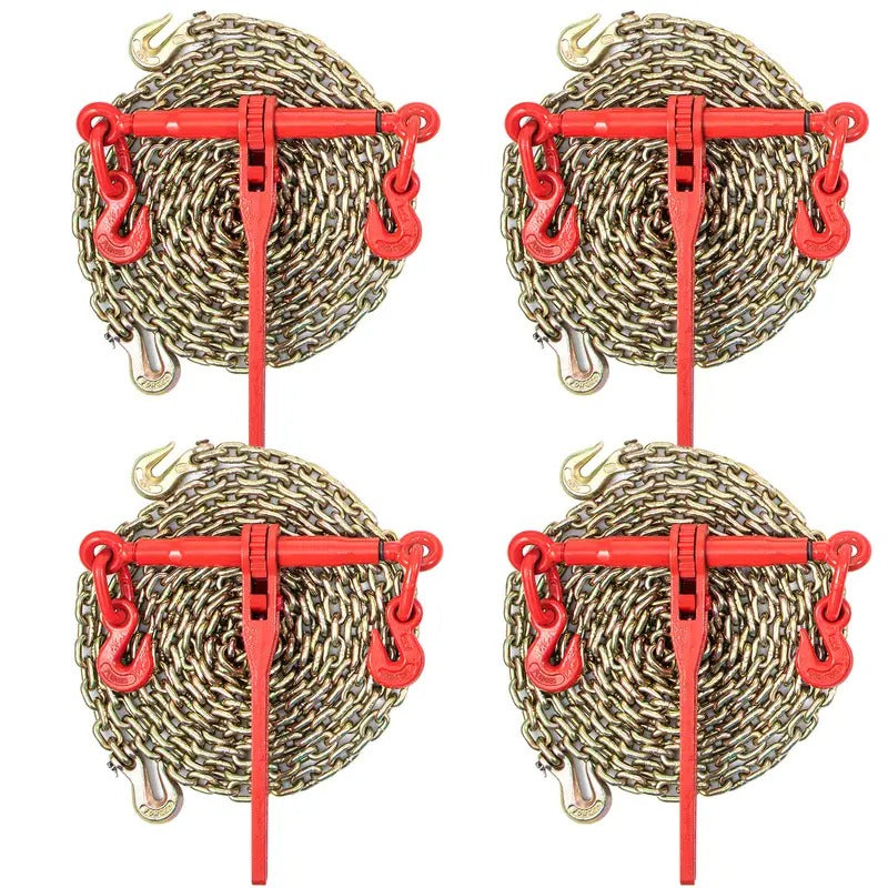 VEVOR Chain Load Binder, 5/16" Tie Down Kit w/ 6600LBS Working Load Capacity and Two Grab Hooks, Includes (4) Ratchet Binders - (4) 21' Grade 80 Chains, Transport Load Package for Hauling, Towing