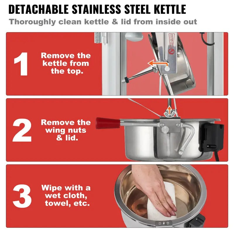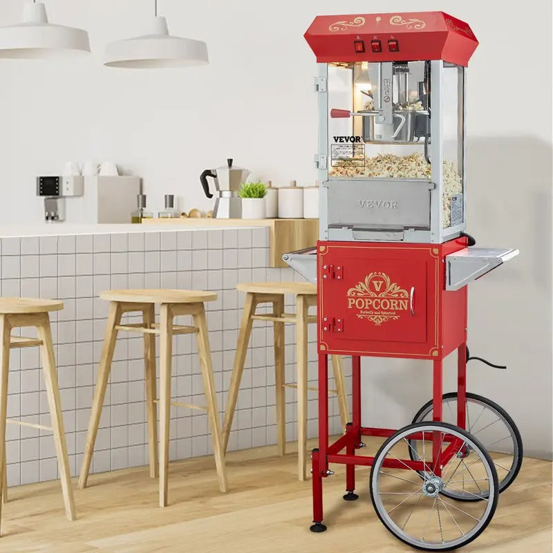 VEVOR Commercial Popcorn Machine, 8 Oz Kettle, 850 W Popcorn Maker on Wheels for 48 Cups per Batch, Popper with 3-Switch Control Steel Frame Tempered Glass Doors Cart 2 Scoops 2 Spoons, Red